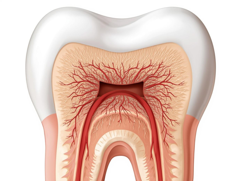 Tủy răng nằm ở trung tâm của răng, chứa mạch máu và thần kinh giúp nuôi dưỡng, duy trì sức sống cho răng. Khi tủy bị viêm hoặc nhiễm khuẩn (thường do sâu răng, chấn thương, mòn răng nặng…), người bệnh sẽ có các triệu chứng: Đau nhức dữ dội, đặc biệt về đêm hoặc khi ăn đồ nóng/lạnh; Ê buốt kéo dài; Lợi quanh răng sưng đỏ, có thể xuất hiện mủ; Răng đổi màu, lung lay nếu viêm tủy đã biến chứng…Nếu không được điều trị, nhiễm khuẩn tủy có thể lan rộng, gây viêm xương ổ răng, viêm mô tế bào, ảnh hưởng sức khỏe toàn thân.