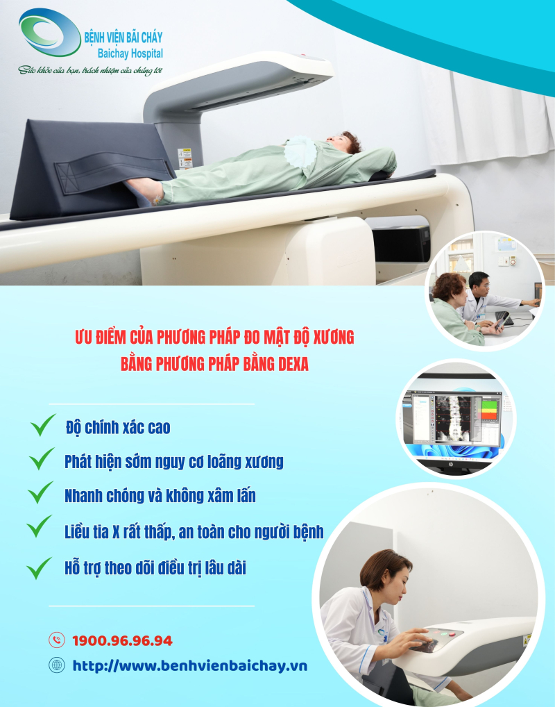- Độ chính xác cao: DEXA cho kết quả đo mật độ xương chính xác, giúp đánh giá nguy cơ loãng xương và nguy cơ gãy xương.
