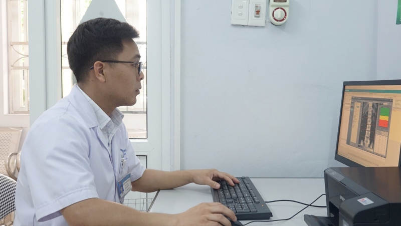 Bác sĩ Nguyễn Mạnh Tuấn, Khoa TDCN Bệnh viện Bai Cháy đọc kết quả cho bệnh nhân.