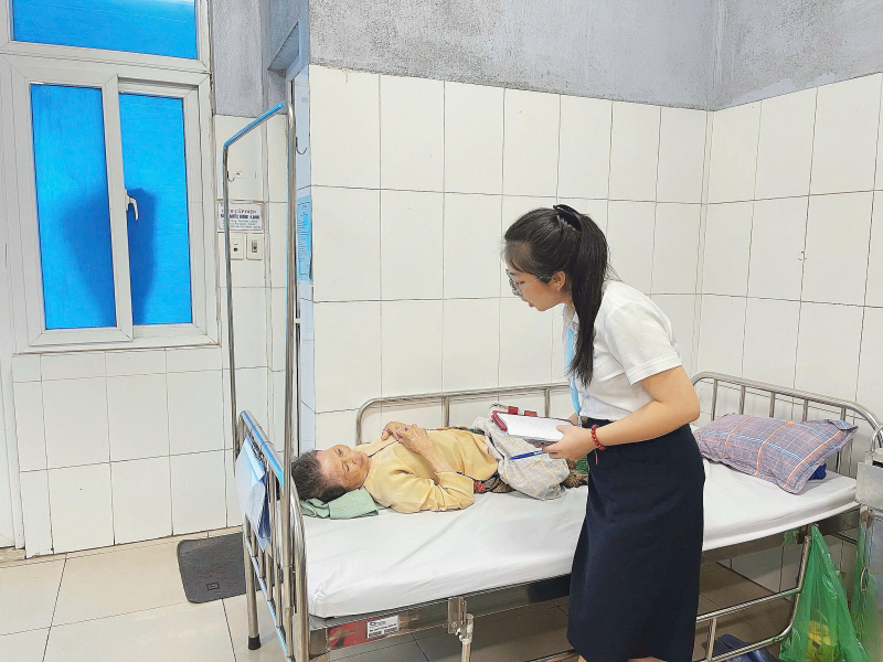 Cán bộ công tác xã hội hỗ trợ tâm lý, thăm hỏi, động viên người bệnh