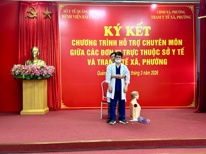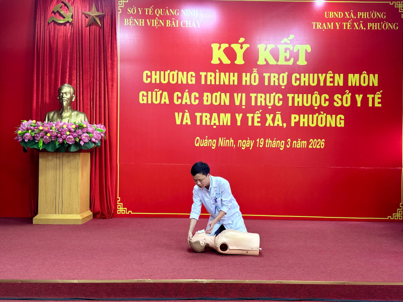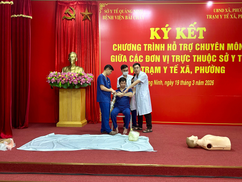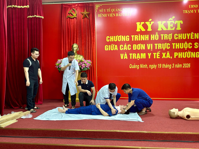 Chiều ngày 19/03/2026, Bệnh viện Bãi Cháy tổ chức chương trình tập huấn “Sơ cấp cứu ban đầu” dành cho đội ngũ nhân viên y tế thuộc 06 Trạm Y tế phường, xã nằm trong diện được bệnh viện hỗ trợ chuyên môn toàn diện.