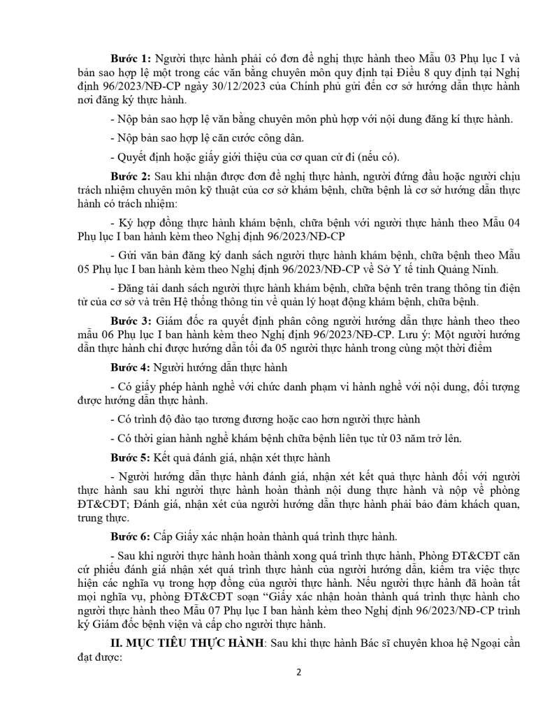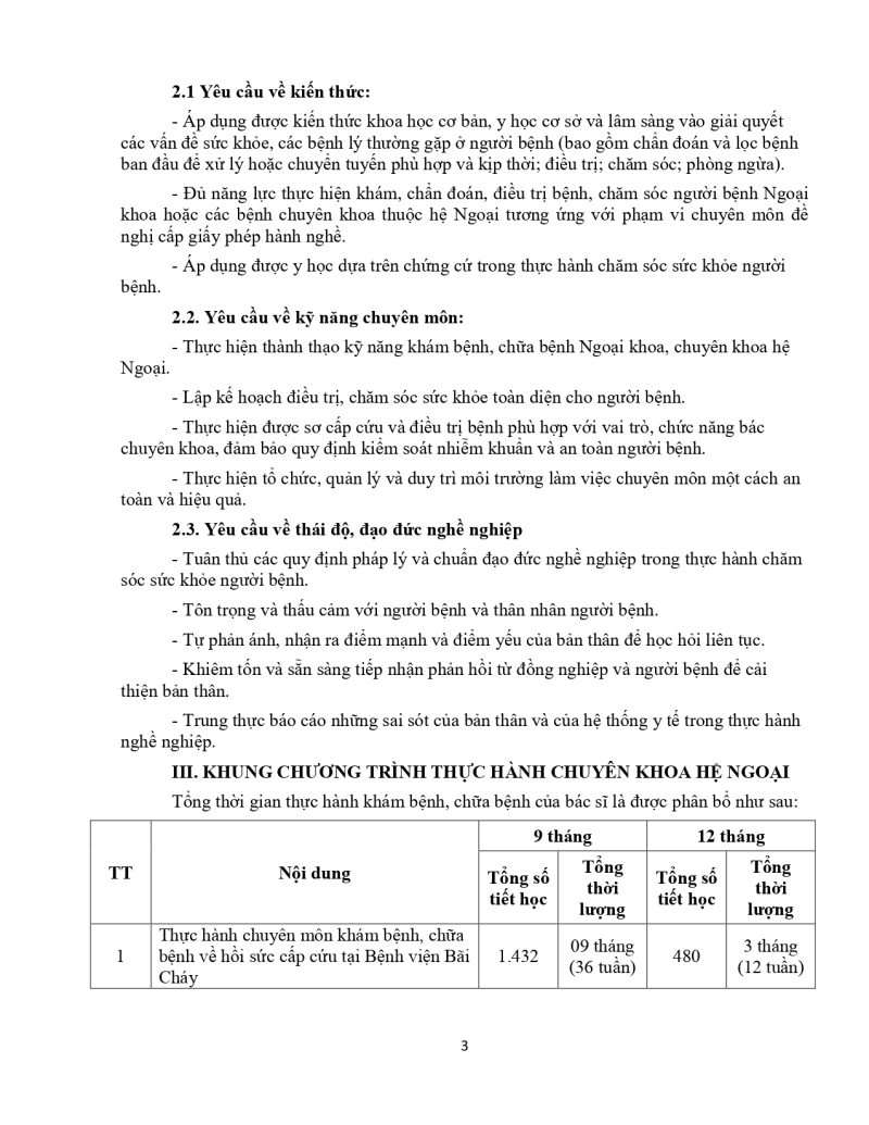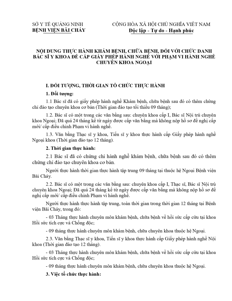 Nội dung thực hành khám bệnh, chữa bệnh đối với bác sĩ cấp chính chỉ hành nghề phạm vi hành nghề chuyên khoa ngoại 2026/03/03 06:37