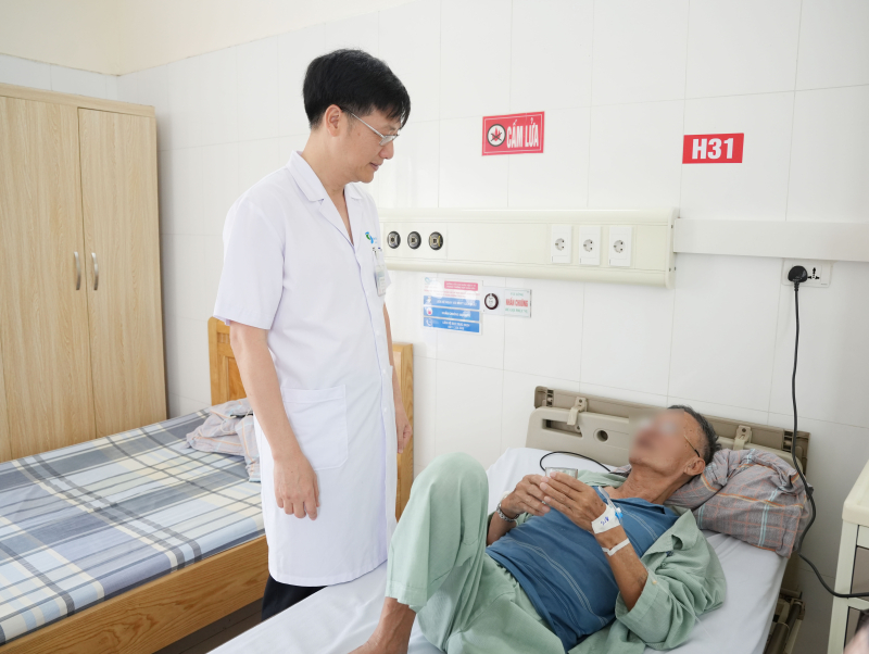 Bác sĩ Nguyễn Văn Dũng - Trưởng Khoa Ung bướu 1, Bệnh viện Bãi Cháy thăm khám cho bệnh nhân
