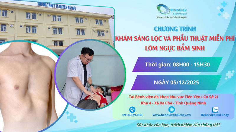 Nhằm tăng cường phát hiện sớm các dị tật lồng ngực ở trẻ em và nâng cao chất lượng chăm sóc sức khỏe nhi khoa trên địa bàn tỉnh Quảng Ninh, Bệnh viện Bãi Cháy tổ chức chương trình khám sàng lọc dị tật lồng ngực cho trẻ em tại Bệnh viện Đa khoa khu vực Tiên Yên (cơ sở 2) vào ngày 05/12/2025.