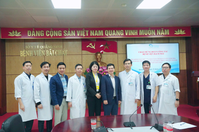 Sáng ngày 11/12/2025, Bệnh viện Bãi Cháy đã tiếp đón và làm việc với đoàn công tác Viện Đào tạo và Nghiên cứu Y dược – Bệnh viện Bạch Mai đến khảo sát nhu cầu đào tạo, chuyển giao kỹ thuật và đánh giá thực trạng chuyên môn nhằm xây dựng kế hoạch chỉ đạo tuyến năm 2026.