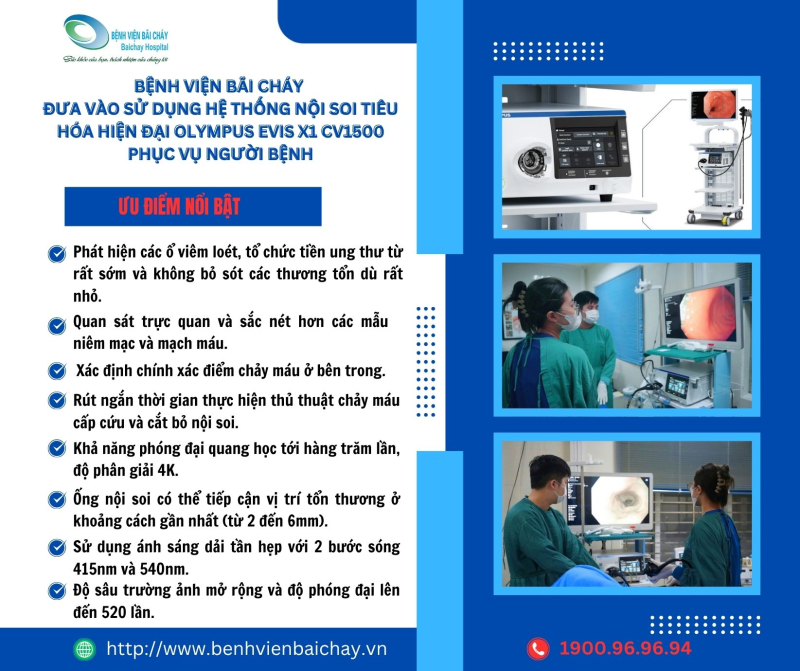 Nhằm nâng cao chất lượng chẩn đoán và điều trị các bệnh lý tiêu hóa, Bệnh viện Bãi Cháy đưa vào sử dụng hệ thống nội soi Olympus EVIS X1 CV1500– thế hệ nội soi tiên tiến hàng đầu thế giới hiện nay, mở ra bước tiến mới trong công tác khám chữa bệnh cho người dân Quảng Ninh và khu vực lân cận.