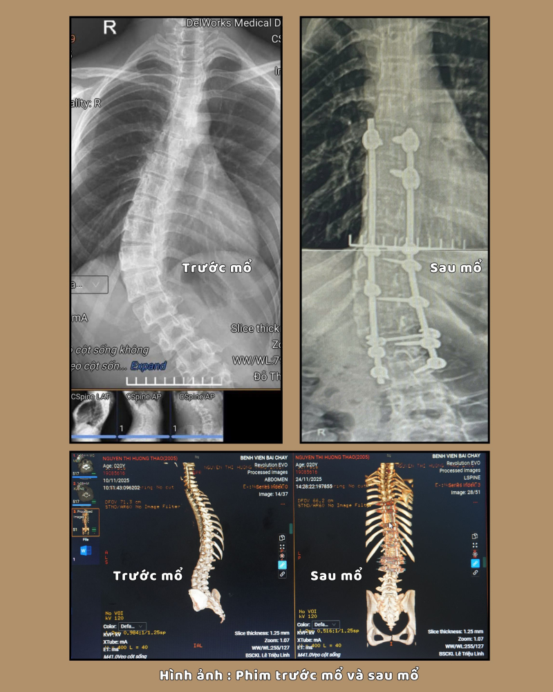 phẫu thuật. Nay tình trạng vẹo cột sống ngày càng nặng, ảnh hưởng đến quá trình