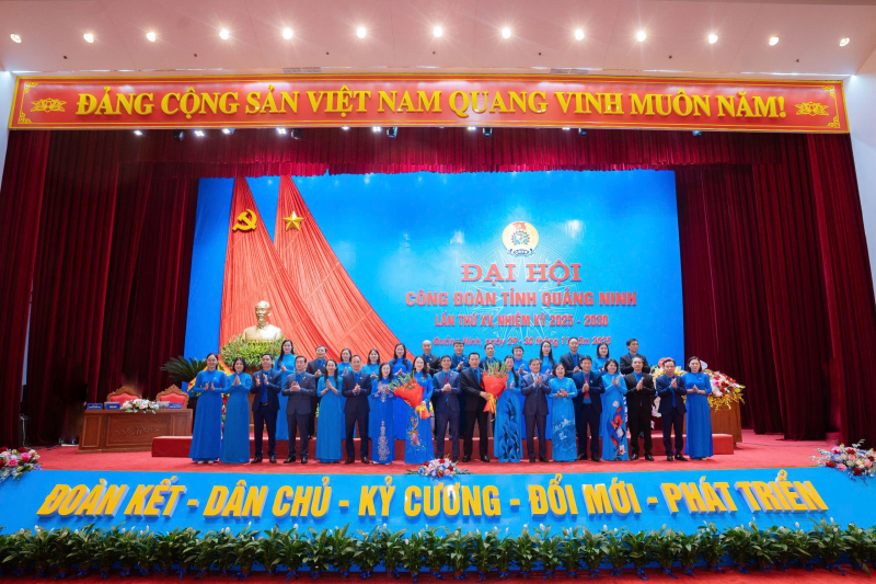 Lãnh đạo Tổng LĐLĐ Việt Nam và tỉnh Quảng Ninh tặng hoa chúc mừng Ban Chấp hành LĐLĐ tỉnh Quảng Ninh khoá XV, nhiệm kỳ 2025 - 2030.