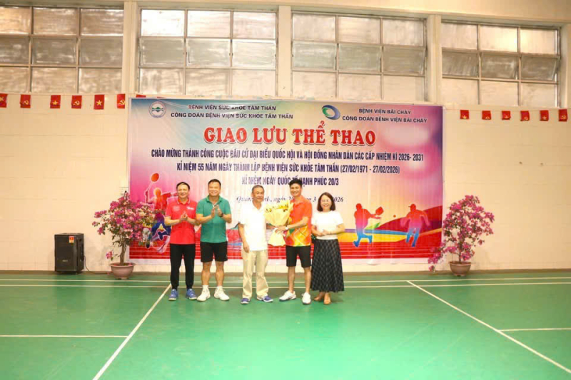 Chiều ngày 20/3/2026, tại Bệnh viện Sức khỏe tâm thần đã diễn ra chương trình giao lưu thể thao giữa cán bộ, viên chức, người lao động của Bệnh viện Sức khỏe tâm thần và Bệnh viện Bãi Cháy. Chương trình diễn ra trong không khí sôi nổi, đoàn kết, thu hút sự tham gia và cổ vũ nhiệt tình của đông đảo cán bộ, nhân viên hai đơn vị.