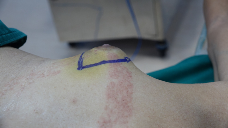 Ca phẫu thuật do Tiến sĩ-bác sĩ Nguyễn Văn Hiệp, BSCKI Nguyễn Hữu Ứng – Khoa Ung bướu 2, Bệnh viện Bãi Cháy thực hiện. Quá trình phẫu thuật quan sát thấy khối u kích thước khoảng 4,5x3cm mật độ chắc, ranh giới không rõ nằm trong nhu mô tuyến, chưa xâm lấn da và thành ngực. Phẫu thuật viên đã tiến hành cắt triệt để tuyến vú phải, phẫu tích hố nách phải vét hạch nách, bảo tồn tối đa thần kinh và mạch máu vùng nách, diện cắt đảm bảo âm tính về mặt ung thư. Phẫu thuật diễn ra an toàn, không biến chứng. Sau 5 ngày được điều trị, chăm sóc hậu phẫu tích cực, bệnh nhân phục hồi sức khỏe tốt và được xuất viện.