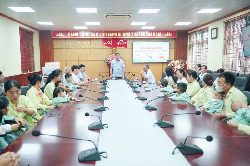 Các đồng chí lãnh đạo Tỉnh, Sở Y tế Quảng Ninh, lãnh đạo phường Việt Hưng tặng quà Tết Trung thu các bệnh nhi