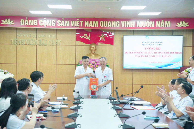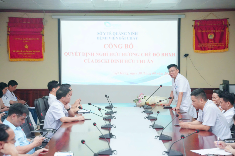 Ngày 30/9/2025, TTND.BSCKII Lê Ngọc Dũng, Giám đốc Bệnh viện Bãi Cháy trao quyết định nghỉ hưu hưởng chế độ BHXH cho bác sĩ chuyên khoa I Đinh Hữu Thuấn – Trưởng khoa Xạ trị và Y học hạt nhân.
