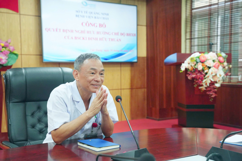 Phát biểu tại buổi lễ, TTND.BSCKII Lê Ngọc Dũng - Giám đốc Bệnh viện Bãi Cháy trân trọng ghi nhận, đánh giá cao những cống hiến của bác sĩ Đinh Hữu Thuấn trong sự nghiệp chăm sóc, bảo vệ sức khỏe nhân dân. Đồng thời, gửi lời chúc sức khỏe, hạnh phúc tới bác sĩ Thuấn và gia đình, mong bác sĩ tiếp tục đồng hành, chia sẻ kinh nghiệm với các thế hệ đồng nghiệp trẻ.