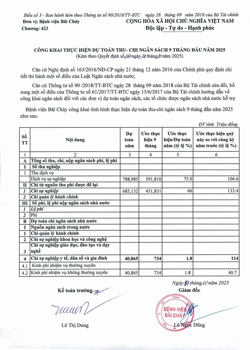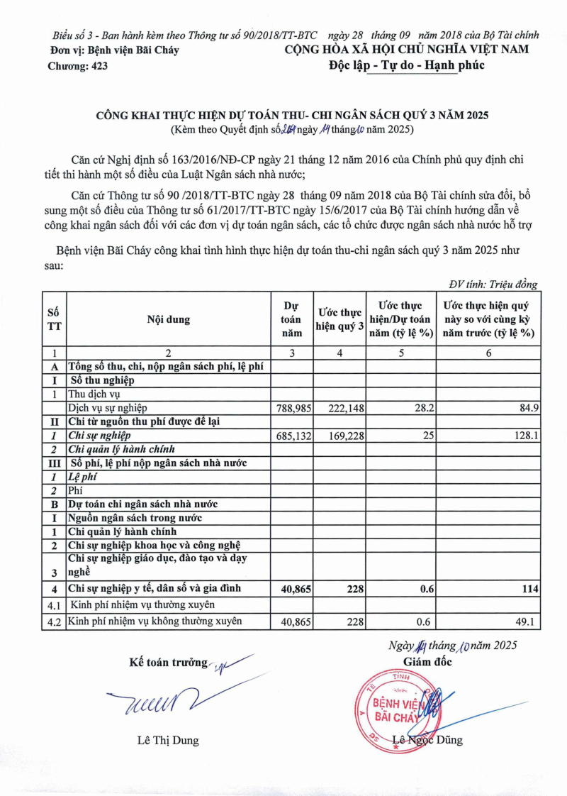 Quyết định 2064 công bố công khai dự toán thu chi ngân sách Quý 3/2025 và 9 tháng đầu năm 2025 của Bệnh viện Bãi Cháy