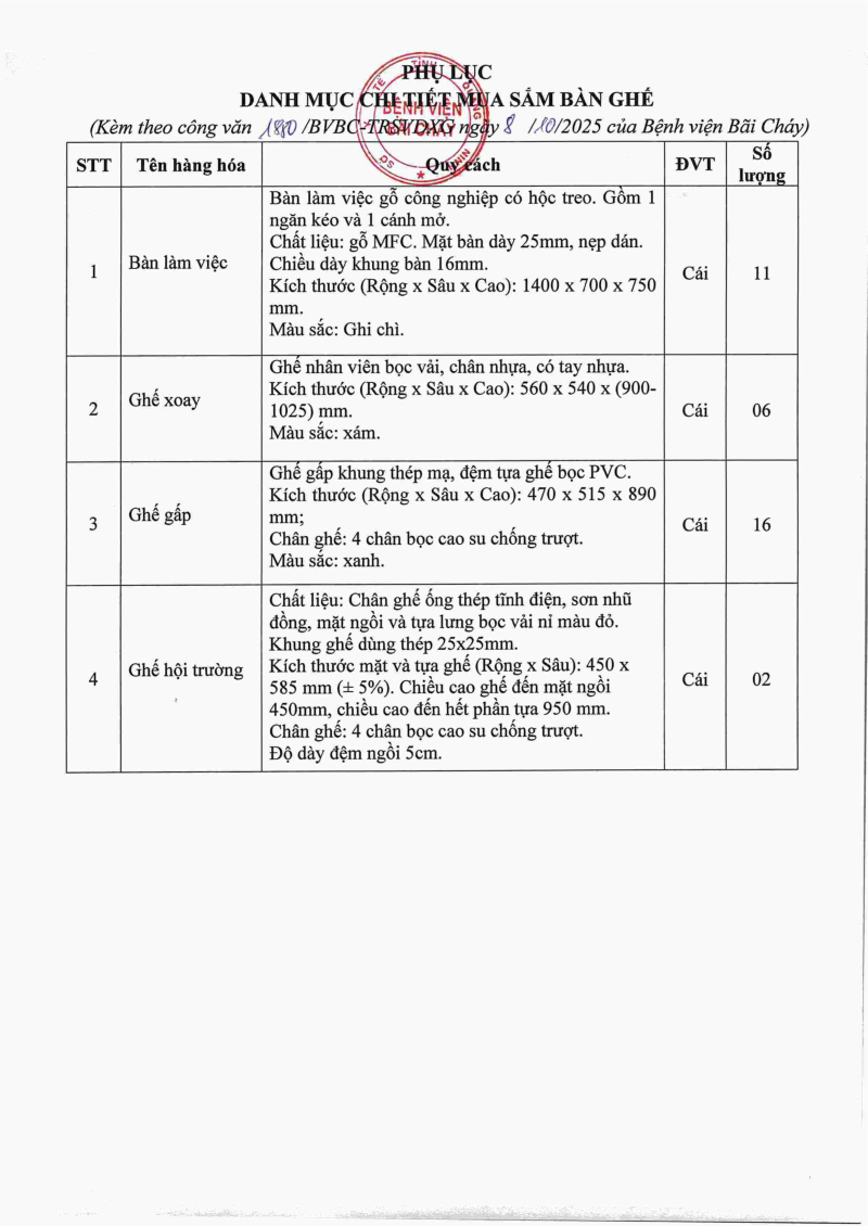 Thông báo số 1880 về nhu cầu mua sắm bàn ghế