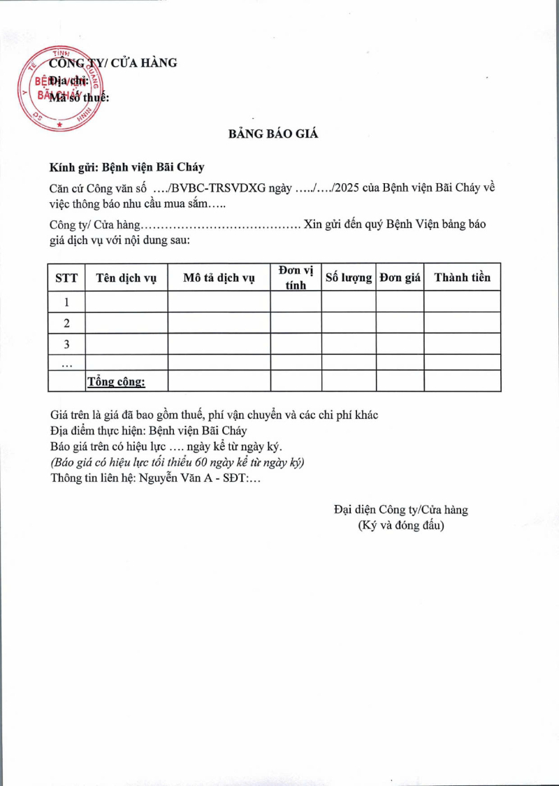 Thông báo số 2336 về nhu cầu mua sắm ấn chỉ phục vụ công tác chuyên môn tại bệnh viện bãi cháy năm 2026
