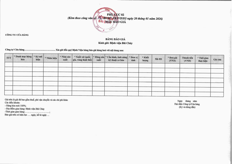 Thông báo 116 mua sắm vật tư tiêu hao tại Bệnh viện Bãi Cháy năm 2025 Hôm nay 09:27 Thông báo 116 mua sắm vật tư tiêu hao tại Bệnh viện Bãi Cháy năm 2025