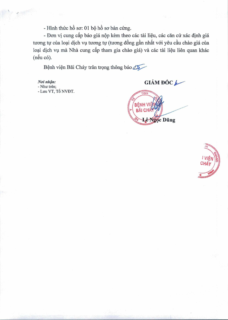 Thông báo 1710 nhu cầu cung cấp dịch vụ bảo vệ năm 2026 tại Bệnh viện Bãi Cháy 2025/09/22 08:13 Thông báo 1710 nhu cầu cung cấp dịch vụ bảo vệ năm 2026 tại Bệnh viện Bãi Cháy