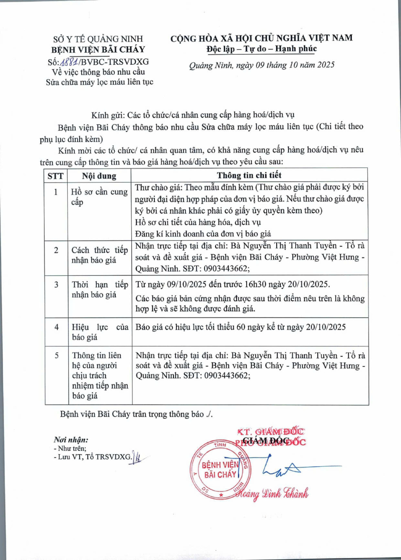 Thông báo 1881 nhu cầu sửa chữa máy lọc máu liên tục 2025/10/09 04:23 Thông báo 1881 nhu cầu sửa chữa máy lọc máu liên tục