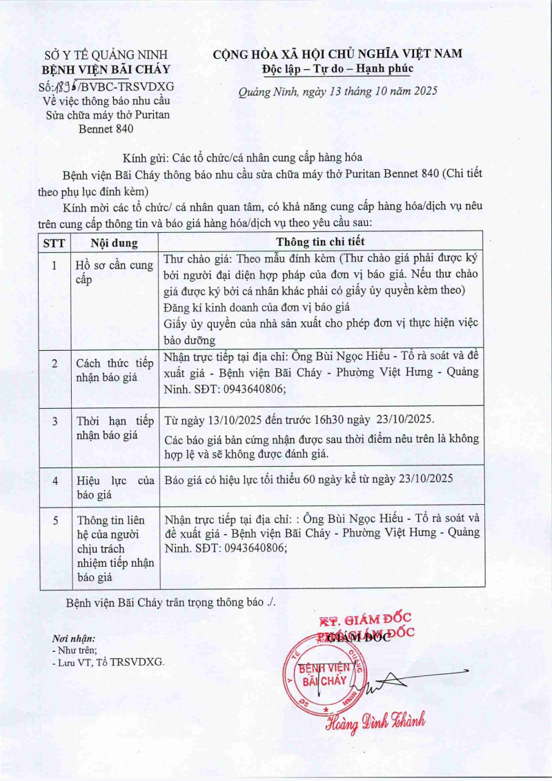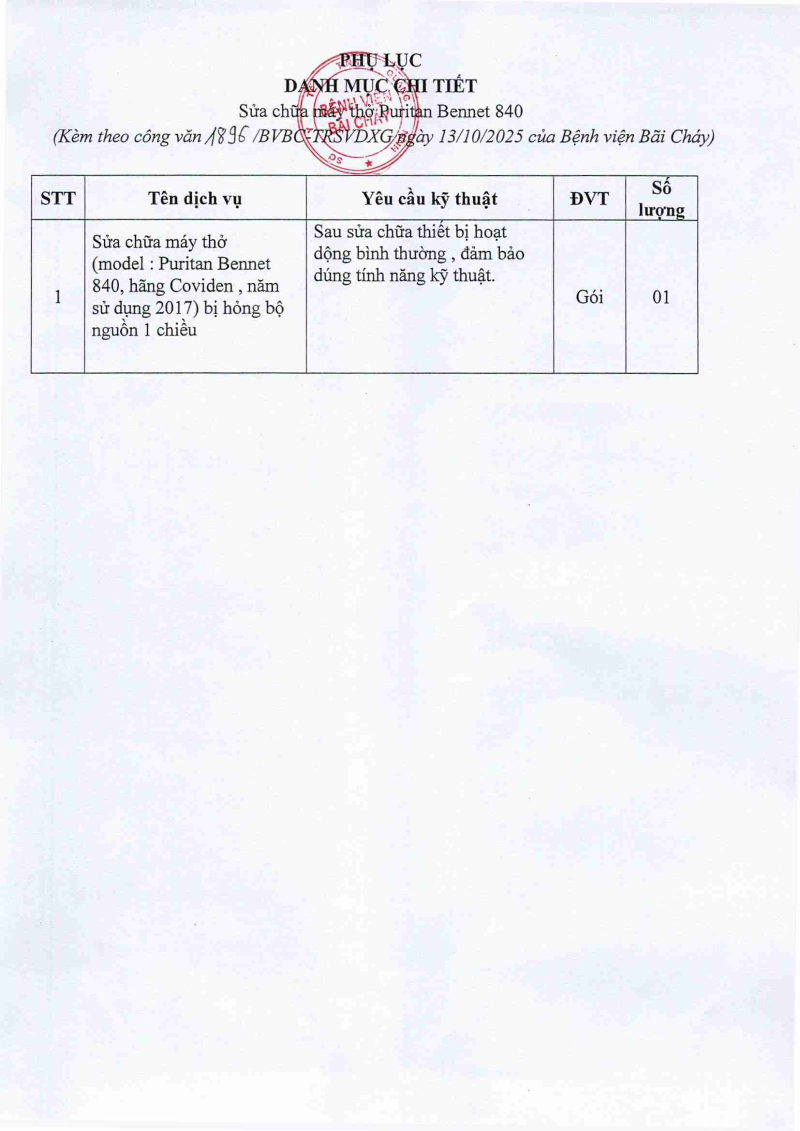 Thông báo 1896 nhu cầu sửa chữa máy thở
