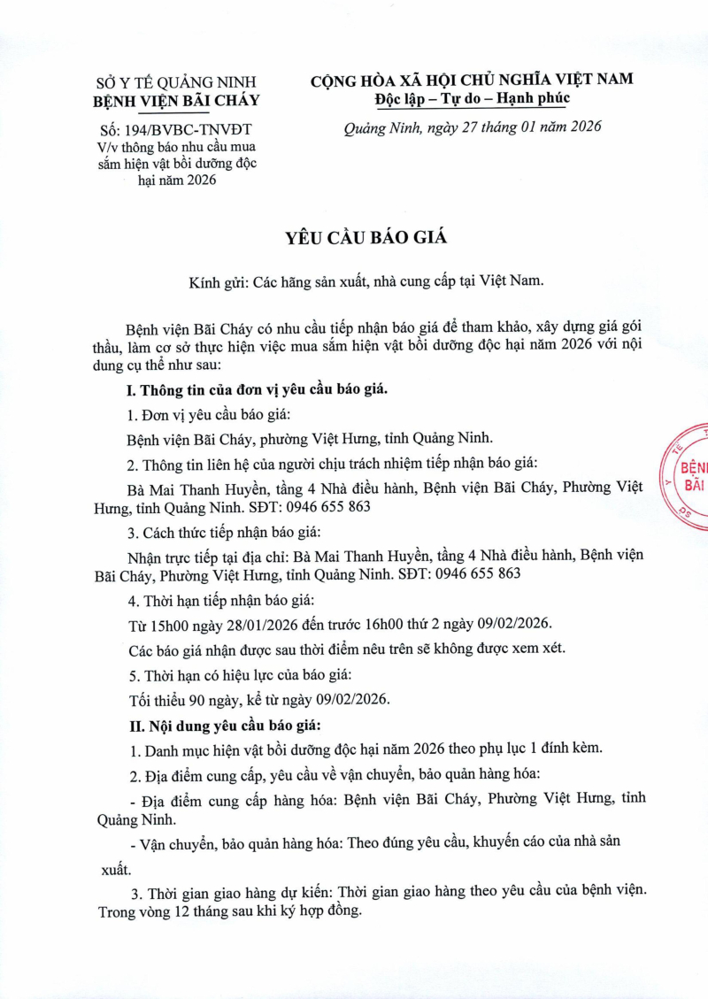 Thông báo số 212 về nhu cầu mua bánh kẹo phục vụ tết Bính Ngọ năm 2026 của Bệnh viện Bãi Cháy