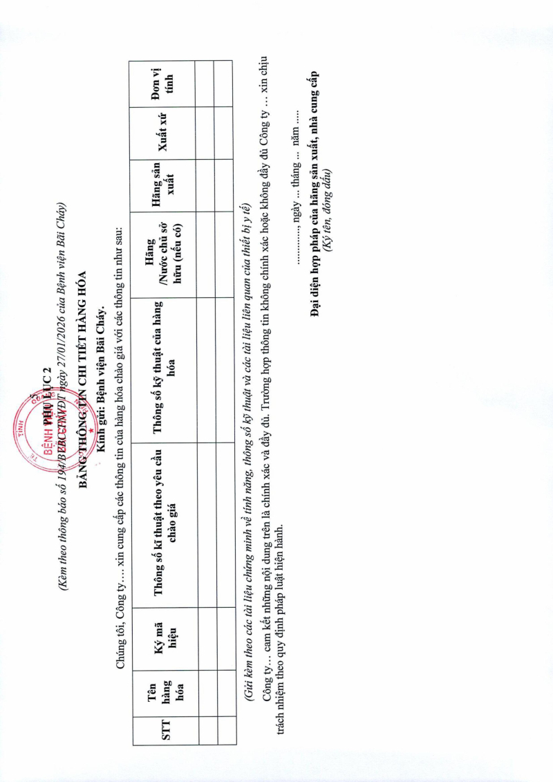 Thông báo 218 nhu cầu mua sắm thiết bị y tế nguồn kinh phí không tự chủ năm 2026