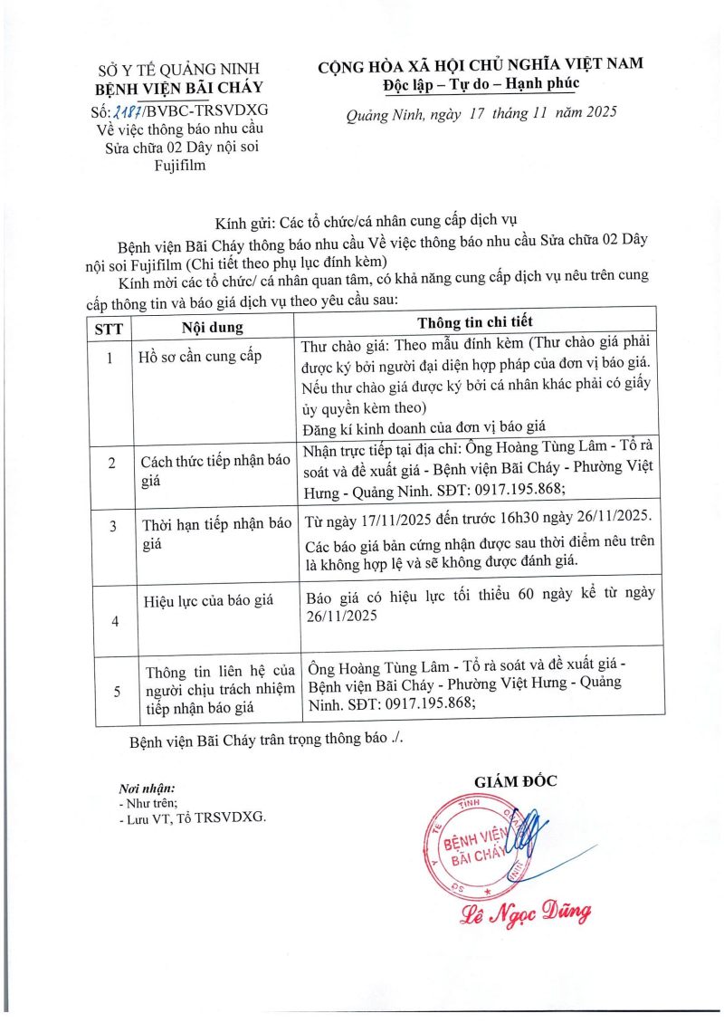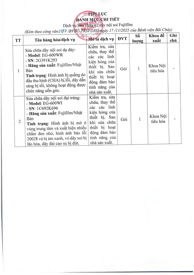 Thông báo 2187 nhu cầu sửa chữa dây nội soi