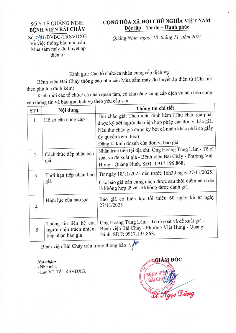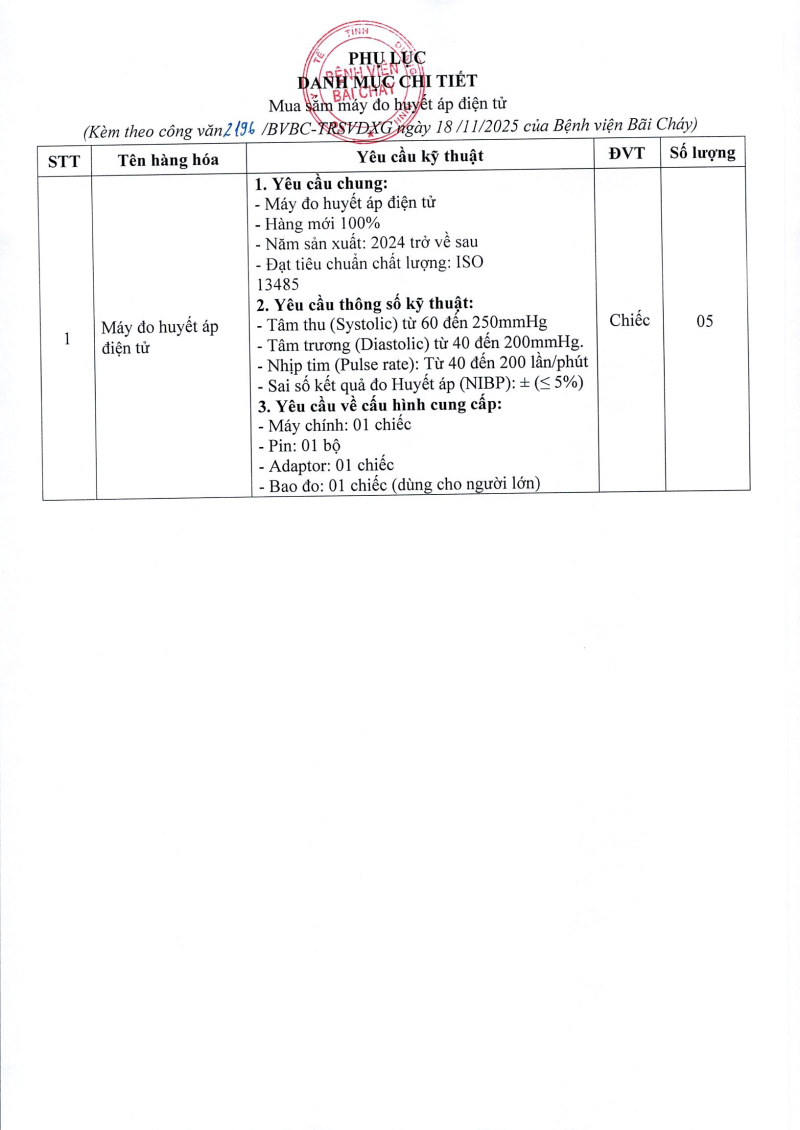 Thông báo 2196 nhu cầu mua sắm máy đo huyết áp điện tử