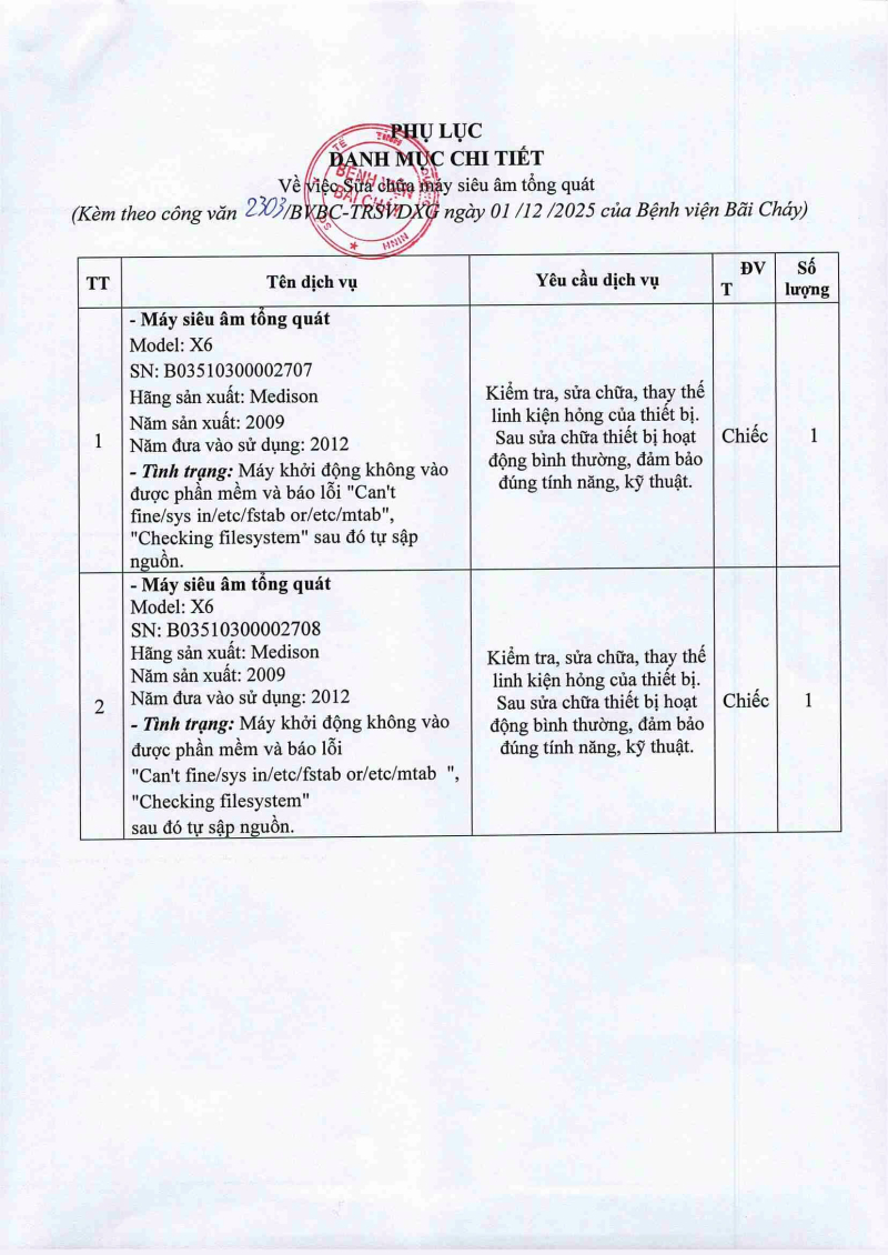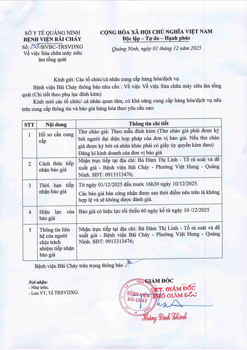 Thông báo 2303 về nhu cầu sửa chữa máy siêu tổng quát