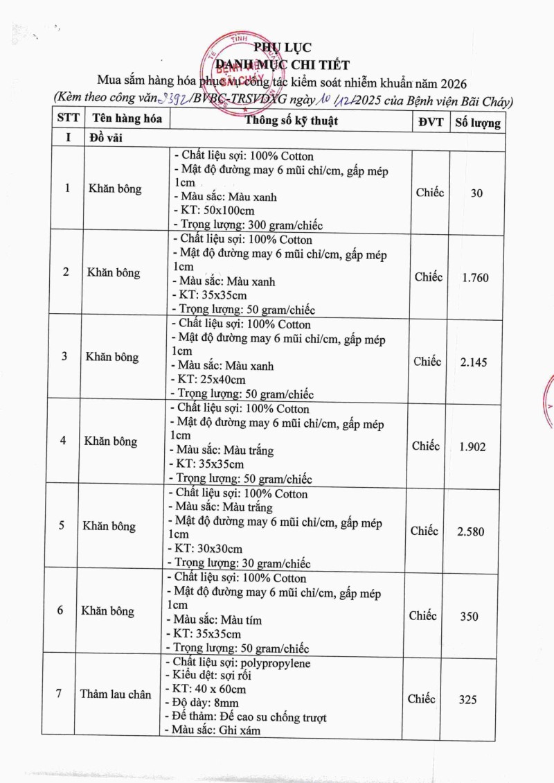 Thông báo 2392 nhu cầu mua sắm hàng hóa phục vụ công tác kiểm soát nhiễm khuẩn năm 2026