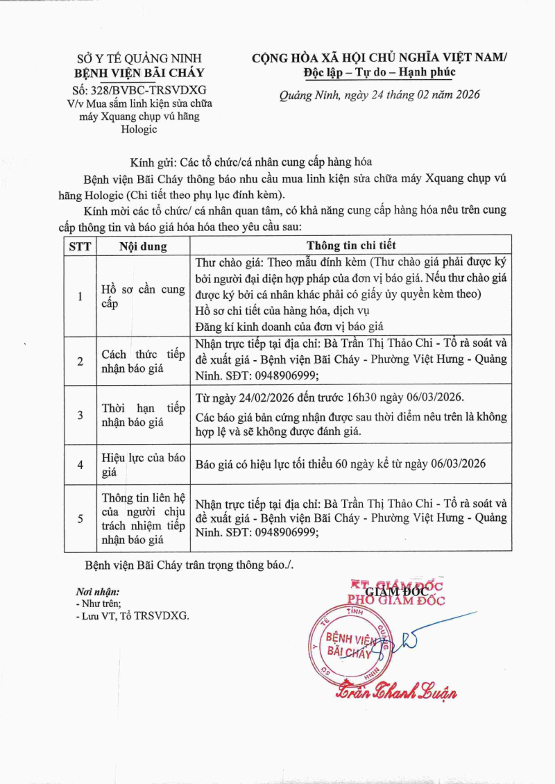 Thông báo 328 mua sắm linh kiện sửa chữa máy xquang chụp vú hãng Hologic 2026/02/24 07:31 Thông báo 328 mua sắm linh kiện sửa chữa máy xquang chụp vú hãng Hologic