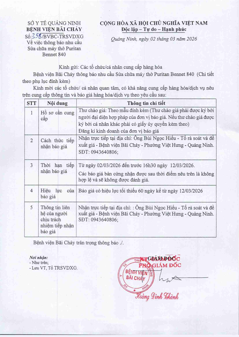 Thông báo số 368 về nhu cầu mua bộ kiosk lấy phiếu khám bệnh tự động