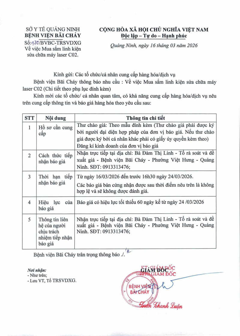 Thông báo 470 về mua mua sắm linh kiện sửa chữa máy laser CO2 Hôm nay 02:49 Thông báo 470 về mua mua sắm linh kiện sửa chữa máy laser CO2