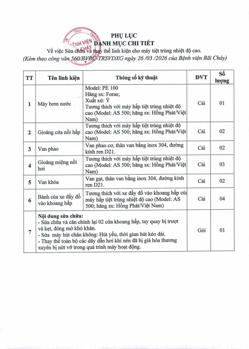 Thông báo 560 sửa chữa và thay thế linh kiện cho máy tiệt trùng nhiệt độ cao 2026/03/27 07:03 Thông báo 560 sửa chữa và thay thế linh kiện cho máy tiệt trùng nhiệt độ cao