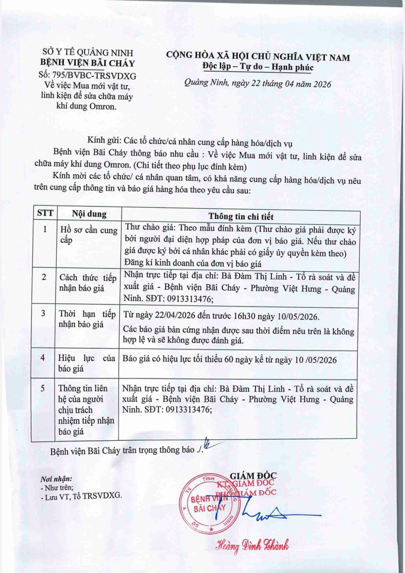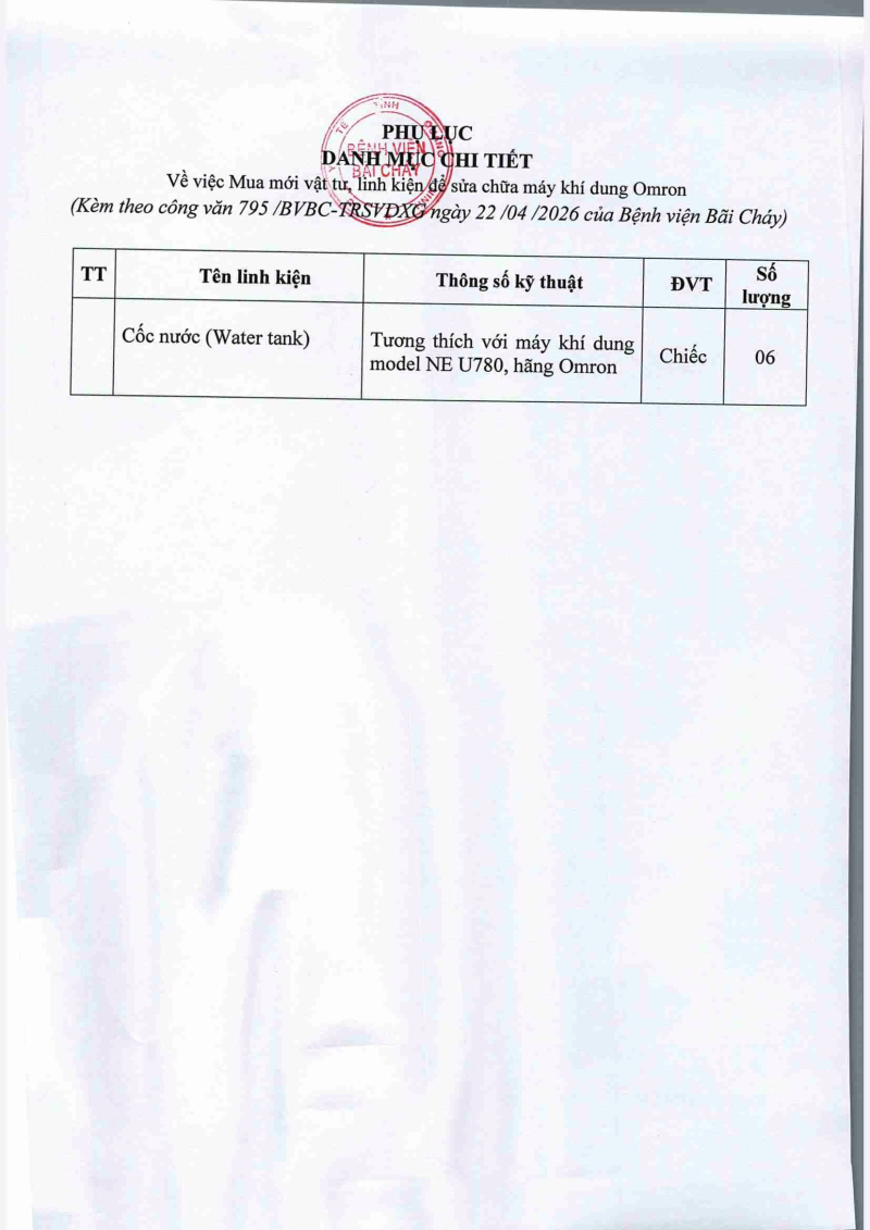 Thông báo 795 mua mới vật tư, linh kiện để sửa chữa máy khí dung Omron Hôm nay 01:39 Thông báo 795 mua mới vật tư, linh kiện để sửa chữa máy khí dung Omron