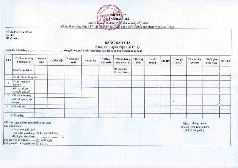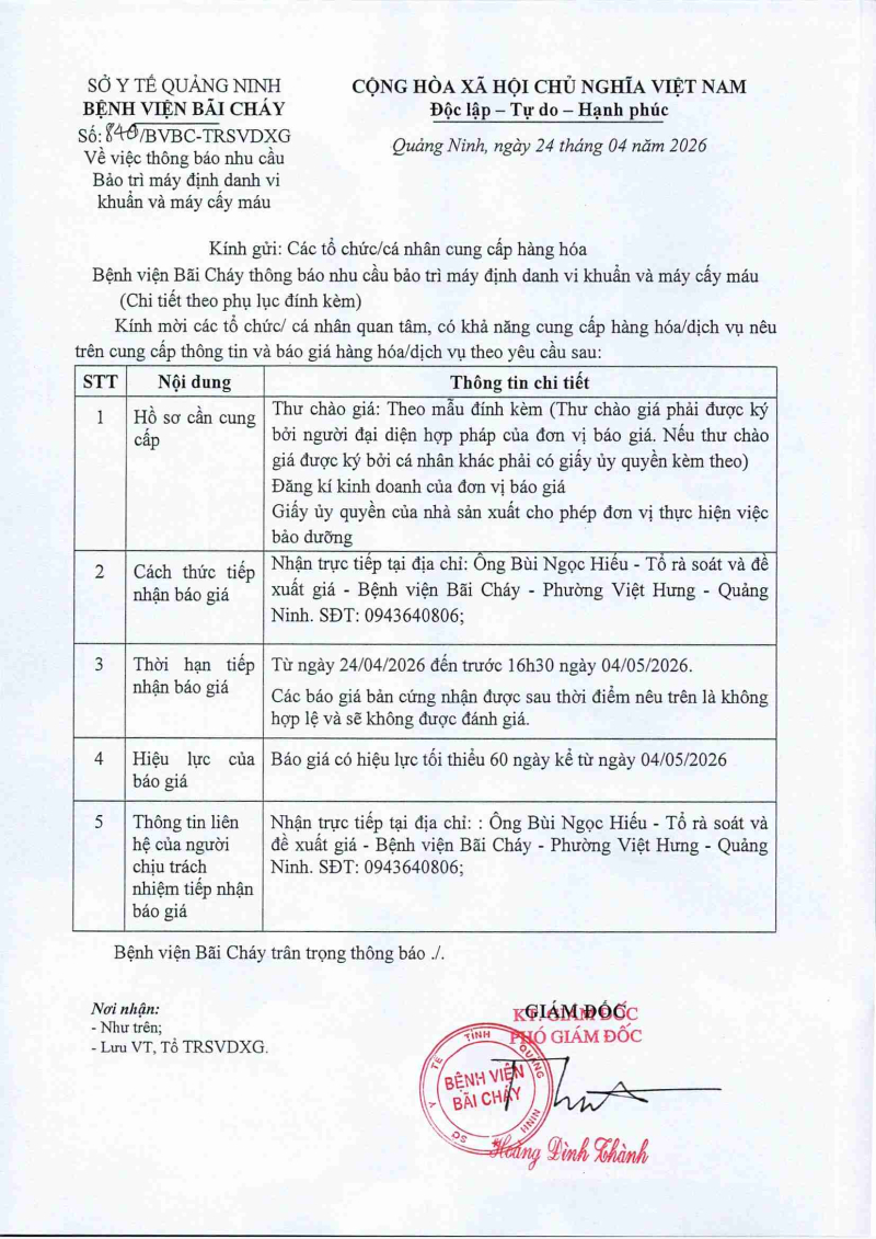 Thông báo số 823 về nhu cầu mua sắm trang thiết bị điện theo kế hoạch khoa phòng năm 2026