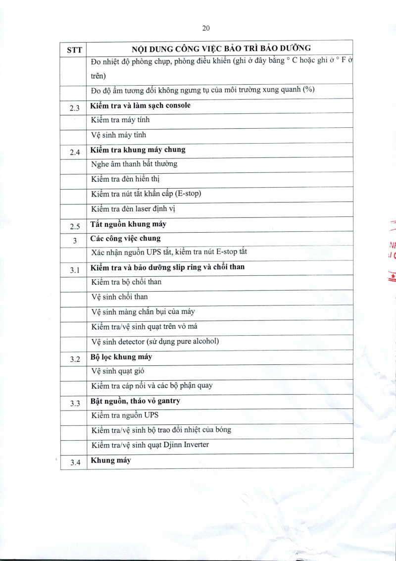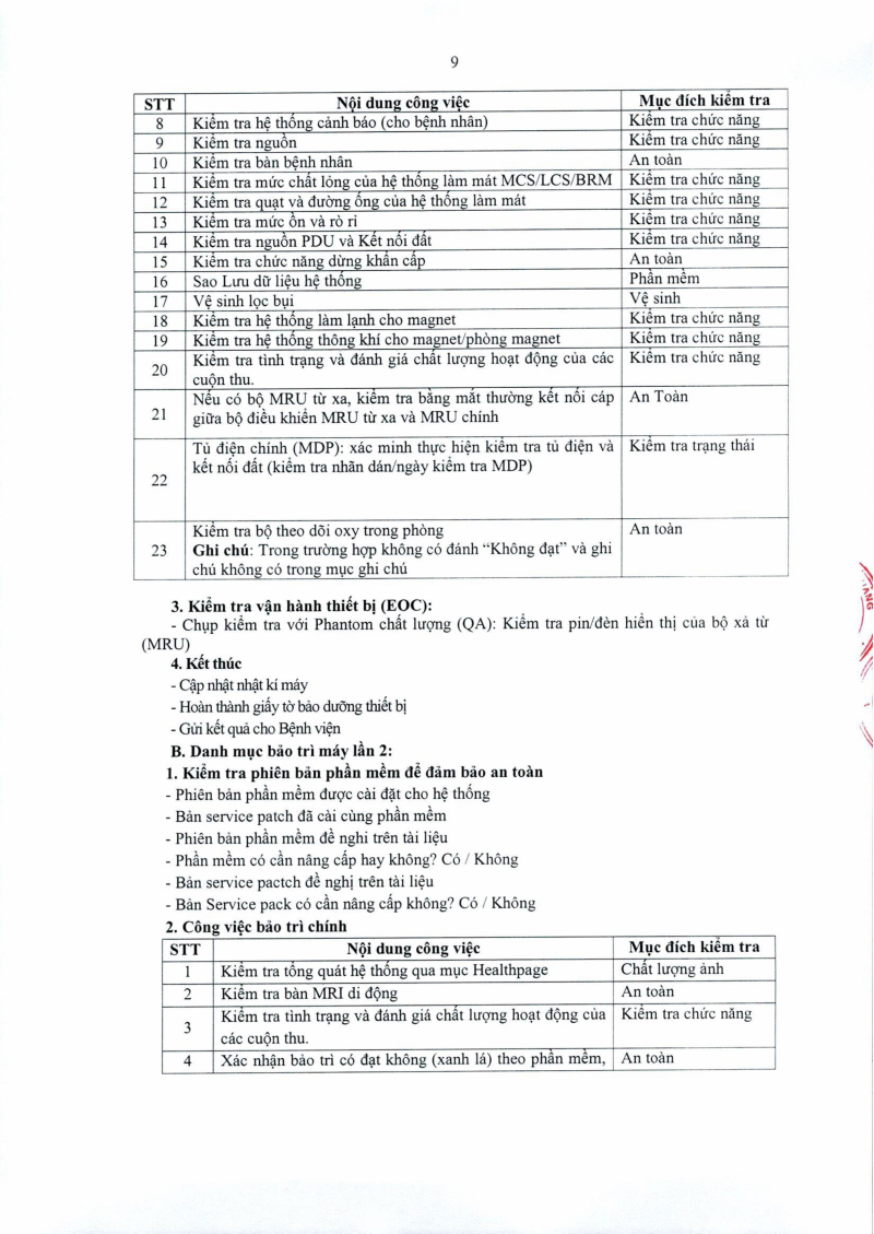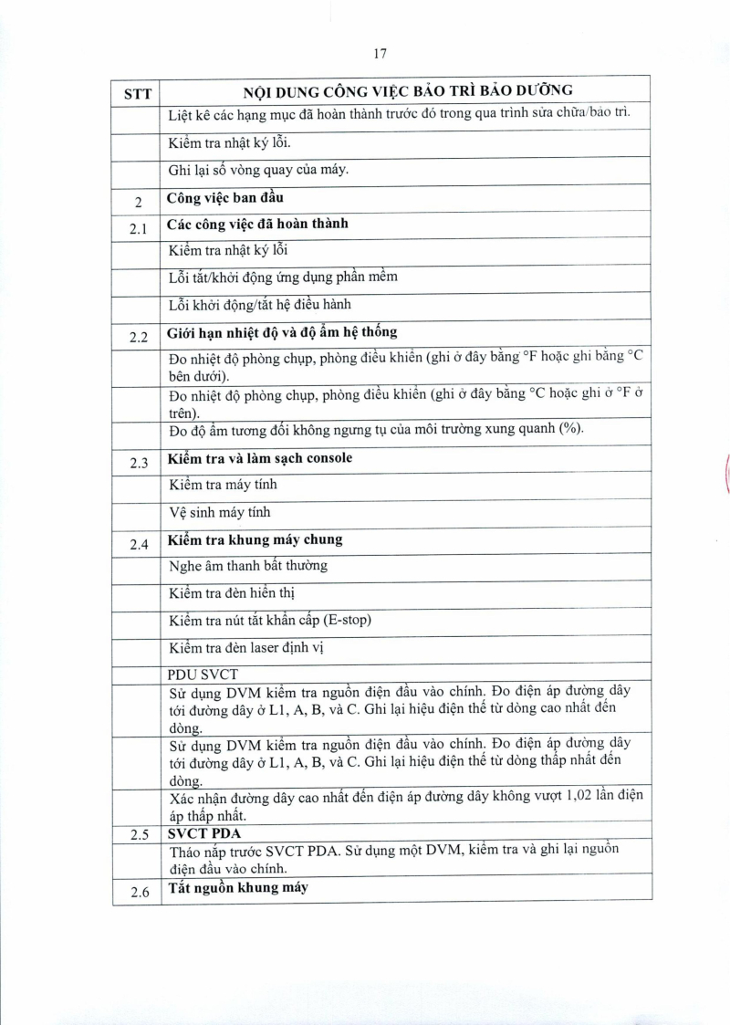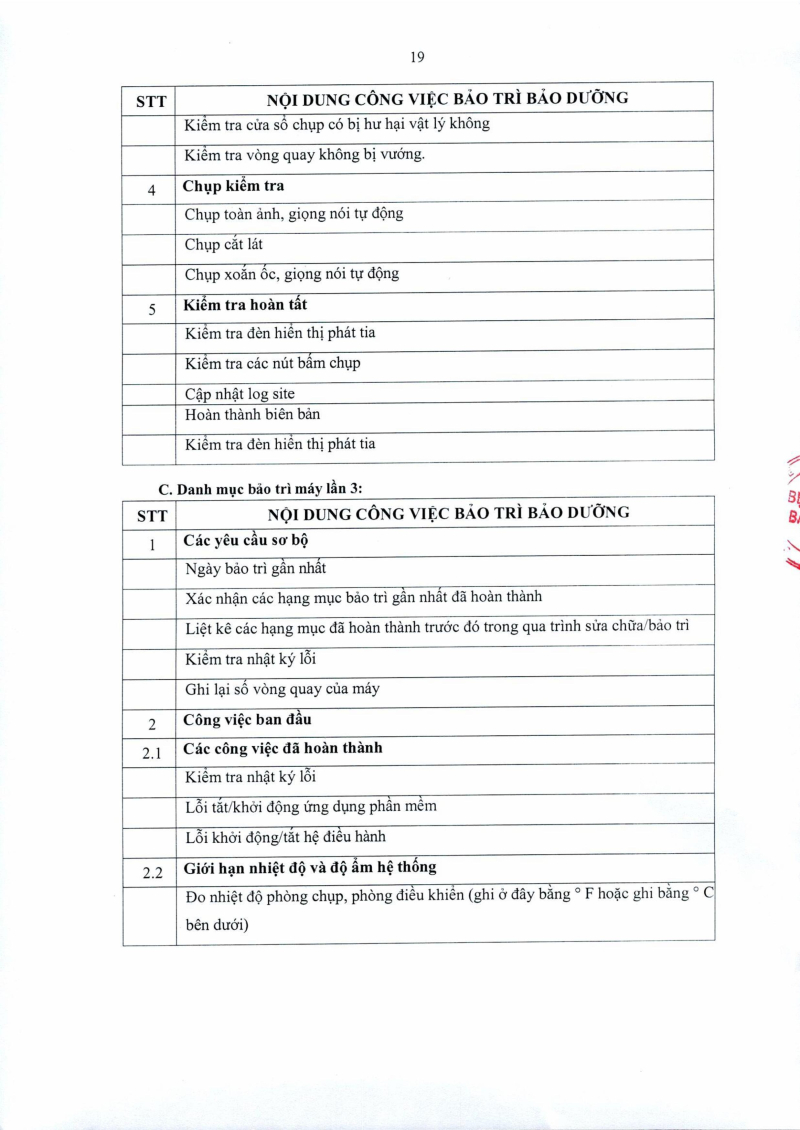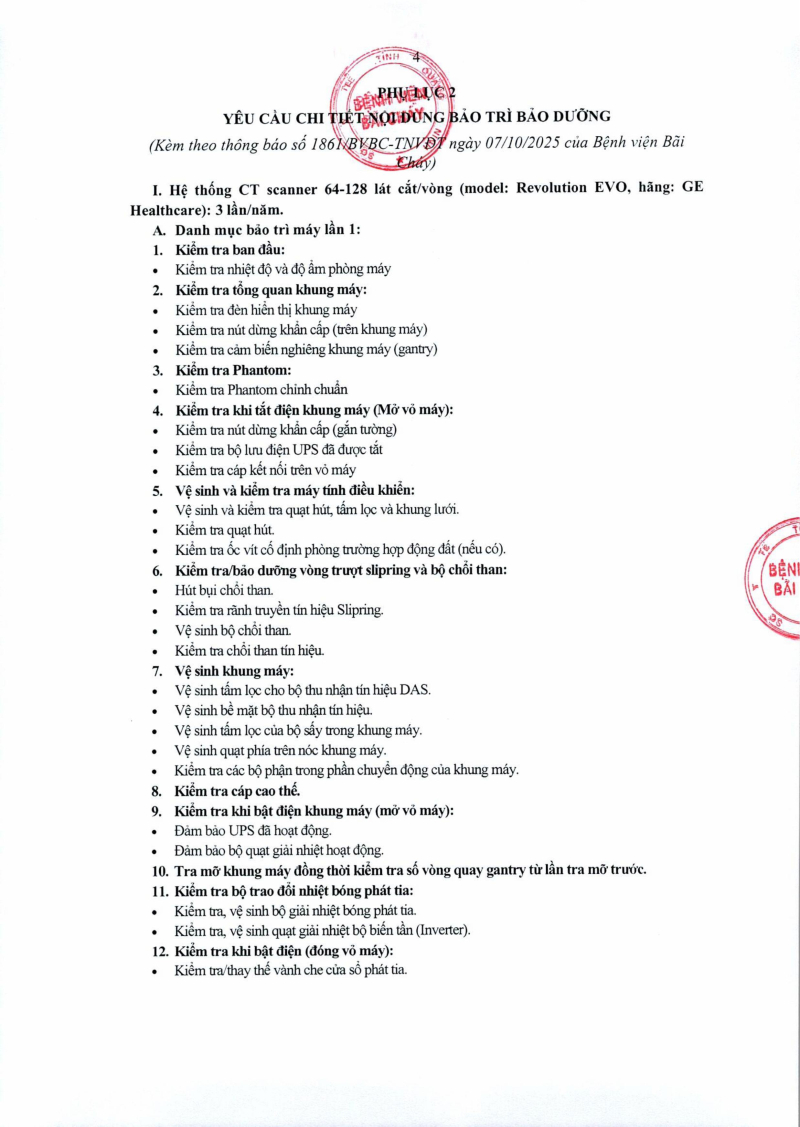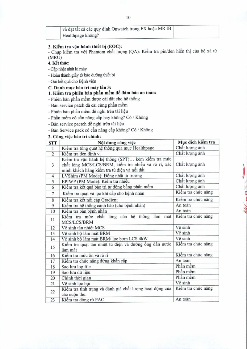 Thông báo số 1861 về nhu cầu bão dưỡng các trang thiết bị chẩn đoán hình ảnh