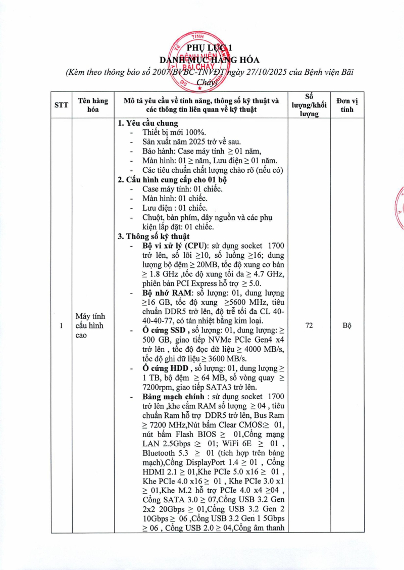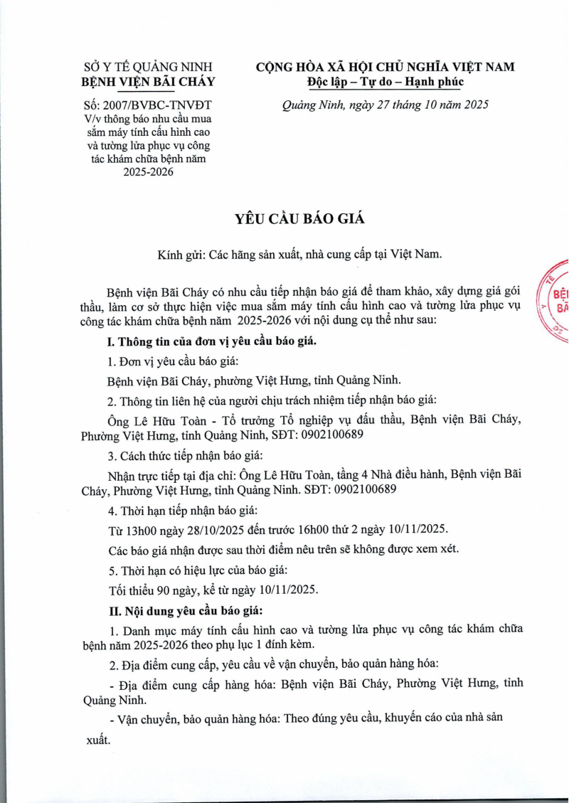 Thông báo số 2007 về nhu cầu mua sắm máy tính cấu hình cao và tường lửa phục vụ công tác khám chữa bệnh Hôm nay 09:00
