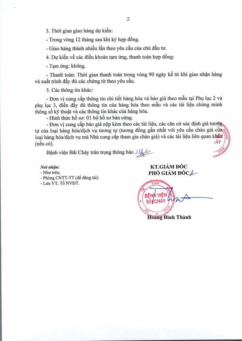 Thông báo 2160 nhu cầu sửa chữa 02 dây nội soi Olympus
