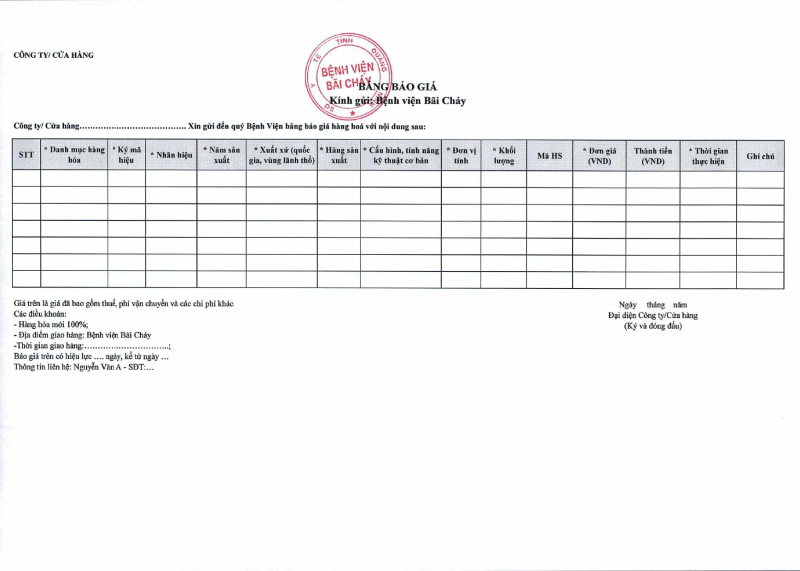 Thông báo số 249 thông báo nhu cầu mua sắm sản phẩm dinh dưỡng đường tiêu hóa cho người bệnh tại bệnh viện bãi cháy 2026