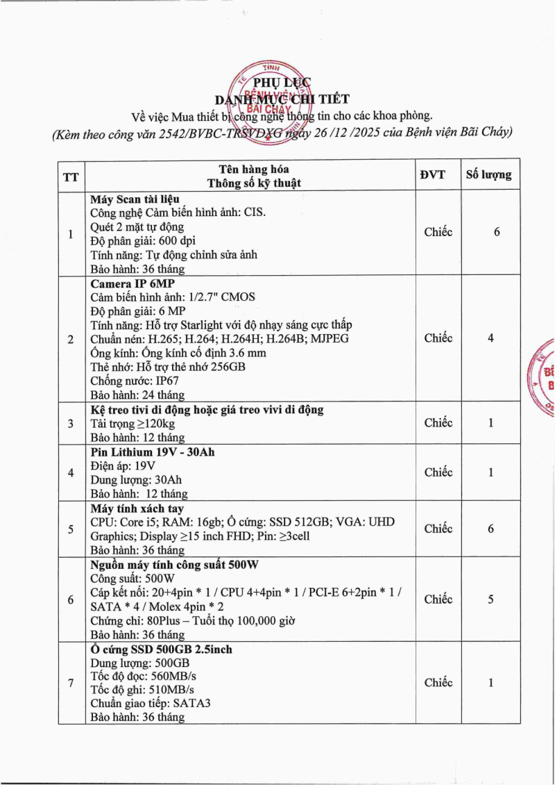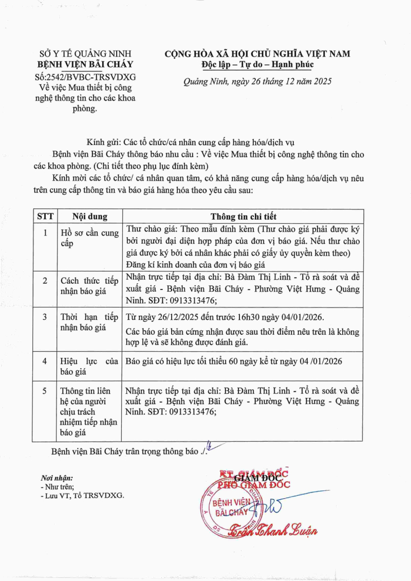 Thông báo số 2542 về nhu cầu mua sắm thiết bị công nghệ thông tin cho các khoa phòng