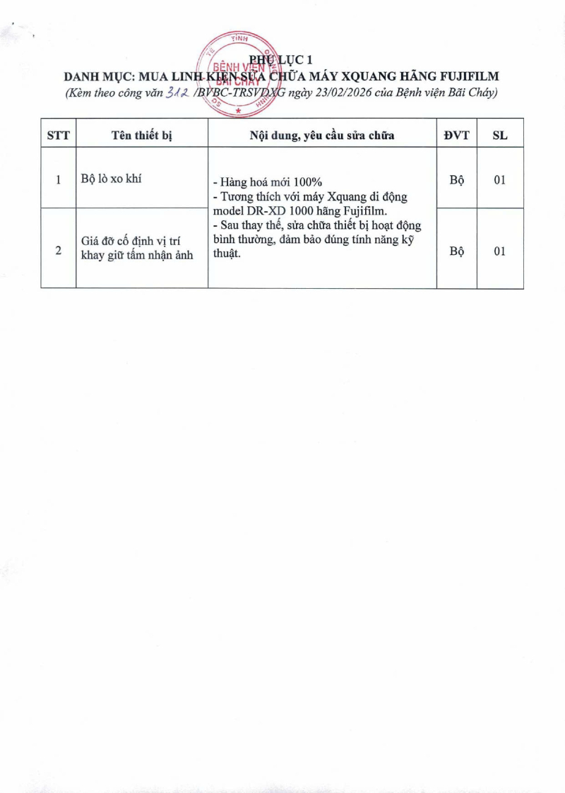 Thông báo số 312 về nhu cầu mua linh kiện sửa chữa máy Xquang di động hãng Fujifilm