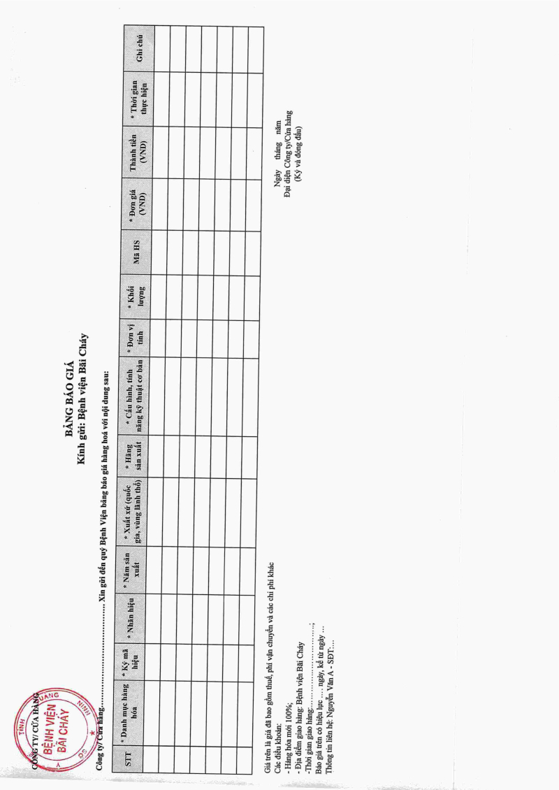 Thông báo số 2340 về nhu cầu báo giá thùng rác phục vụ công tác phân loại, thu gom và vận chuyển chất thải y tế năm 2026