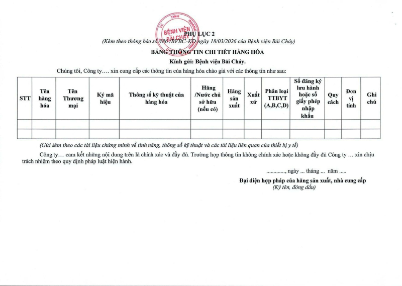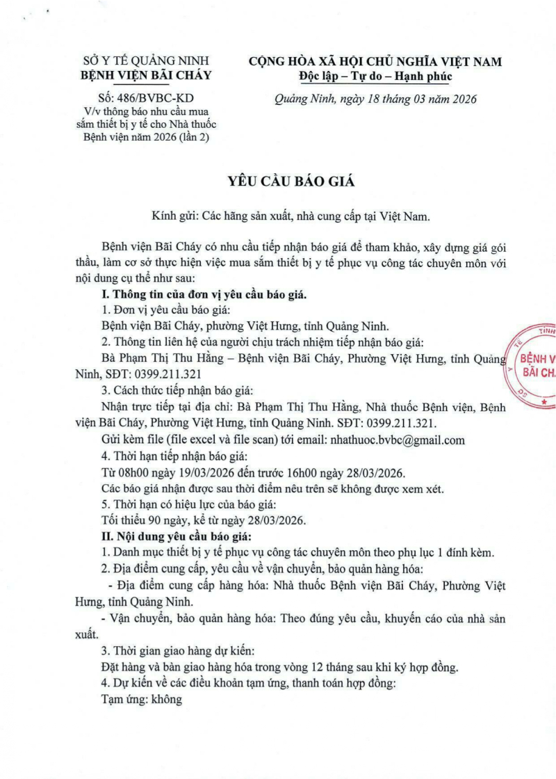 Thông báo số 486 về nhu cầu mua sắm thiết bị y tế cho nhà thuốc bệnh viện năm 2026