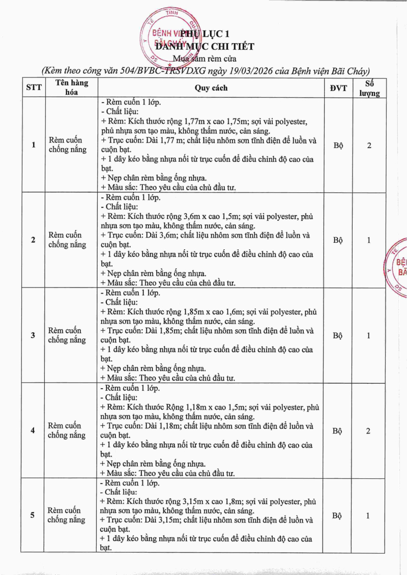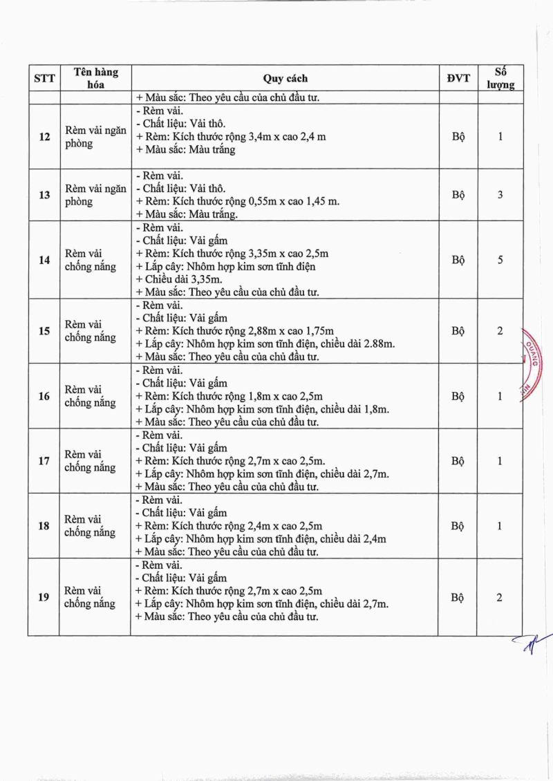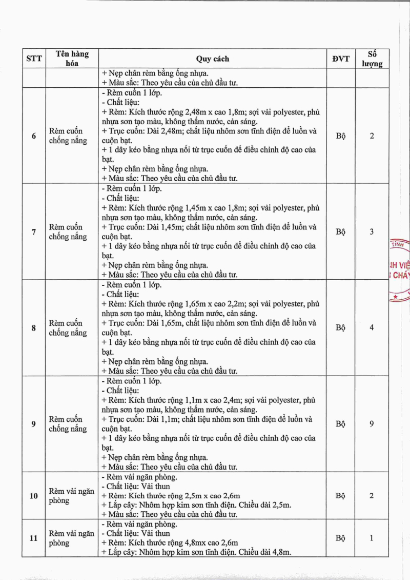 Thông báo số 504 về nhu cầu mua sắm rèm cửa