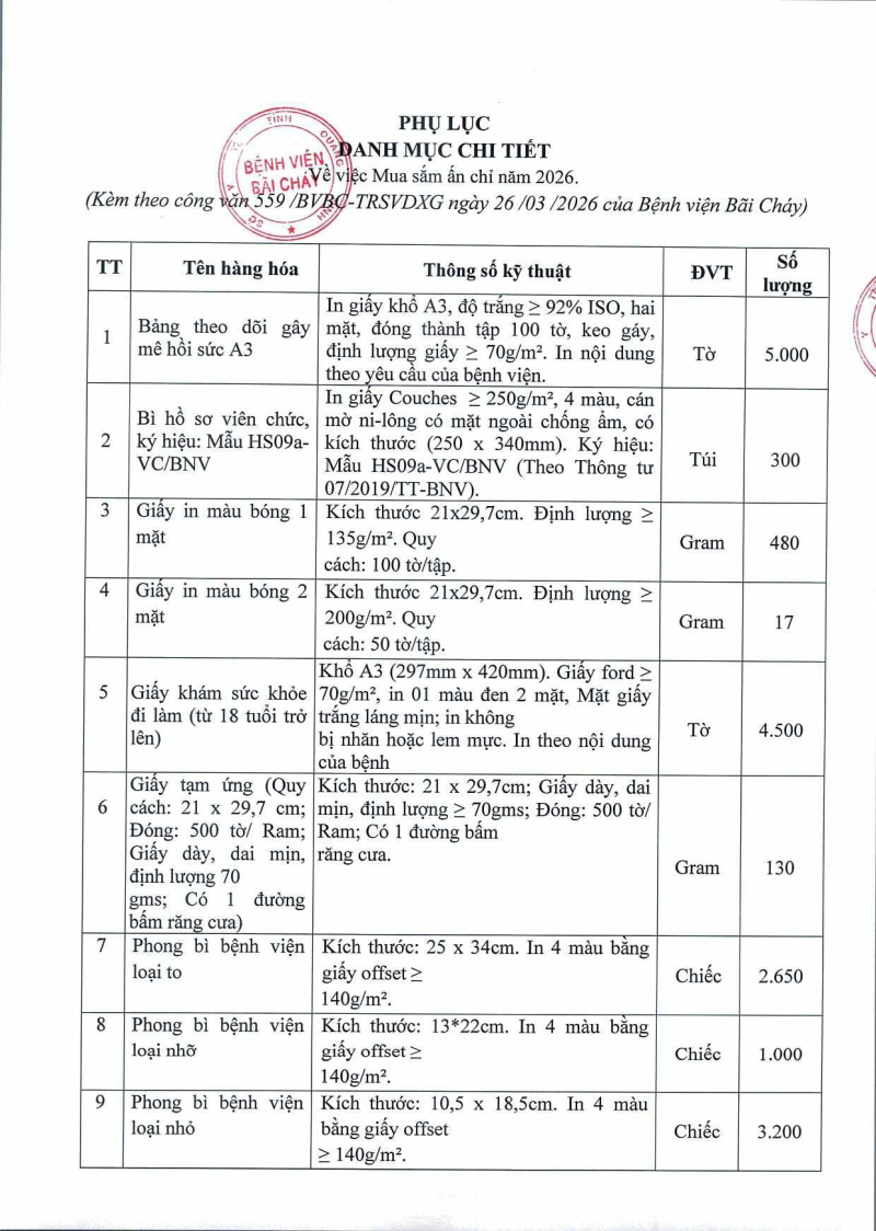 Thông báo số 559 về nhu cầu mua sắm ấn chỉ năm 2026