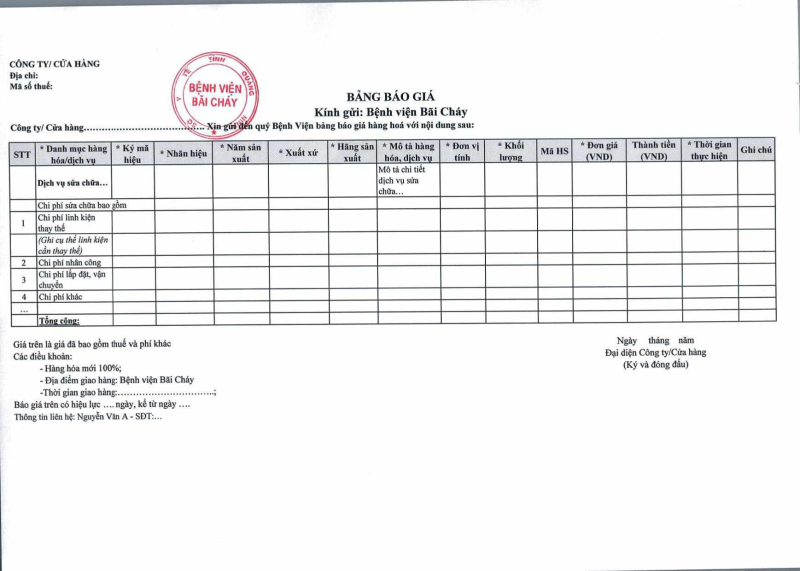 Thông báo số 588 về nhu cầu mua bơm mới thay thế bơm cũ hỏng khu khám bệnh yêu cầu