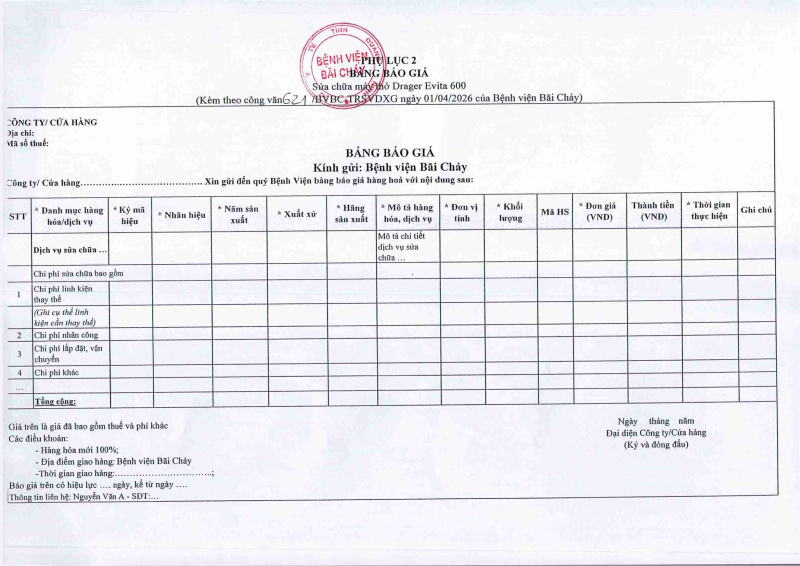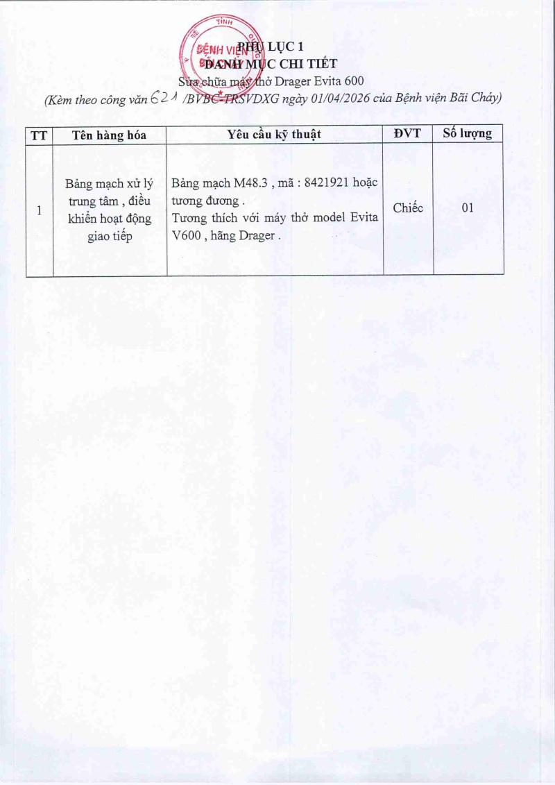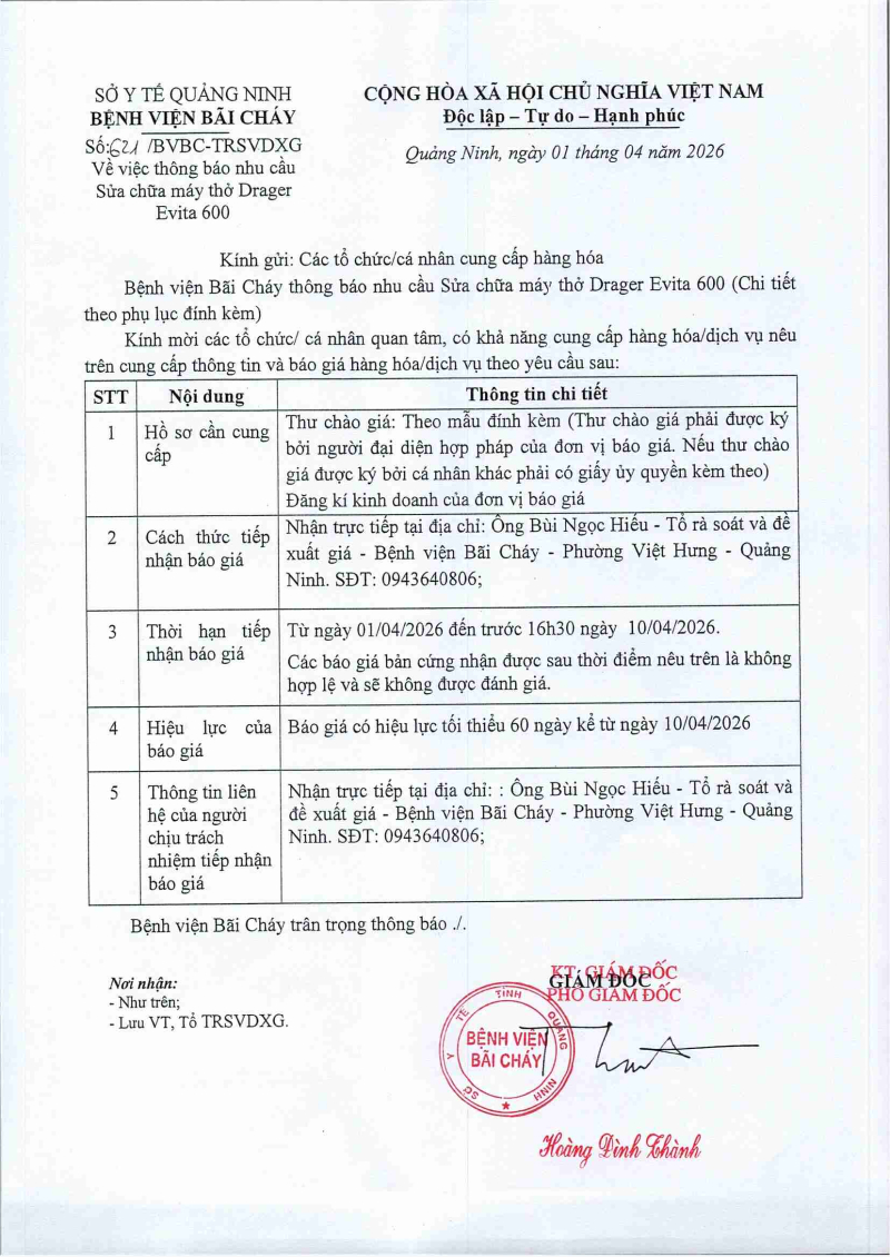 Thông báo số 622 về nhu cầu bảo dưỡng định kỳ máy hấp tiệt trùng HS–5035