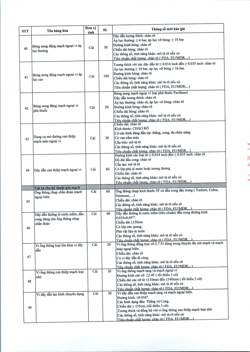 Thông báo số 709 về nhu cầu mua sắm vật tư can thiệp mạch, xquang can thiệp 2026,2027 2026/04/10 13:52