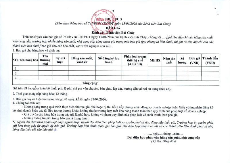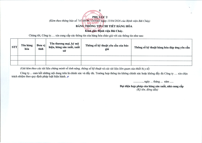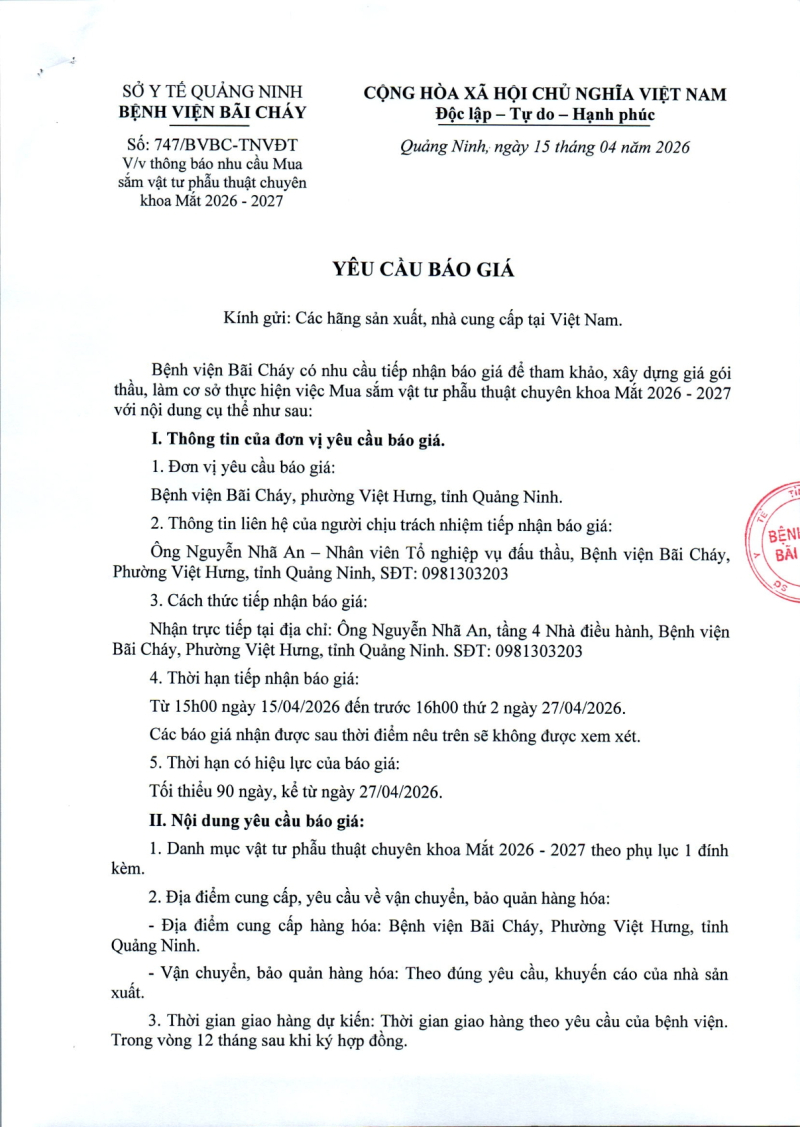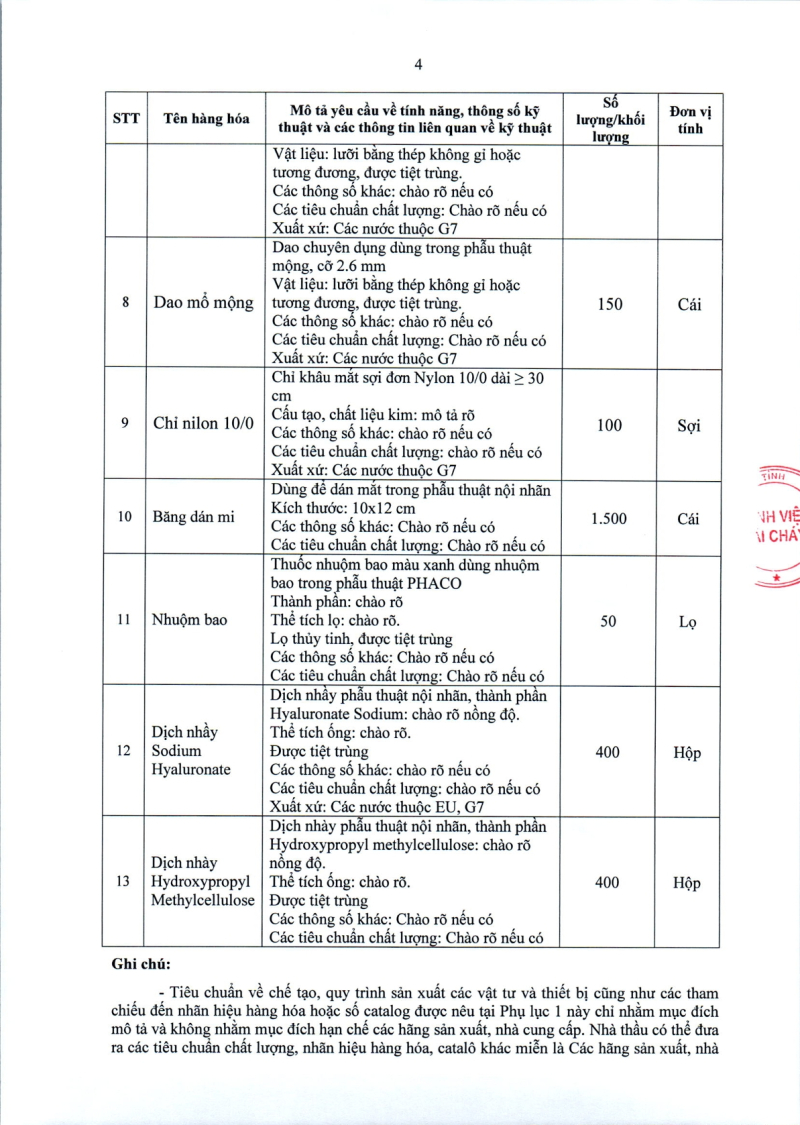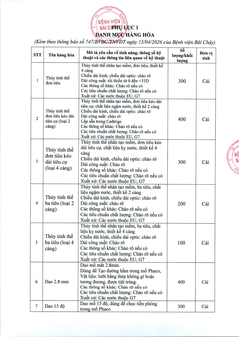 Thông báo số 747 về nhu cầu mua sắm vật tự phẫu thuật chuyên khoa Mắt 2026 - 2027